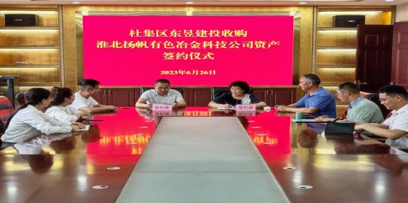 29 06月2023 了解詳情 集團(tuán)公司資產(chǎn)收購(gòu)項(xiàng)目舉行簽約儀式 6月26日上午,在安徽淮北杜集經(jīng)濟(jì)開發(fā)區(qū)管理委員會(huì)會(huì)議室,在開發(fā)區(qū)管委會(huì)負(fù)責(zé)人員現(xiàn)場(chǎng)見證下,集團(tuán)公司與淮北揚(yáng)帆有色冶金科技公司就資產(chǎn)收購(gòu)項(xiàng)目舉行簽約儀式,集團(tuán)公司副總經(jīng)理博超出席并簽字。